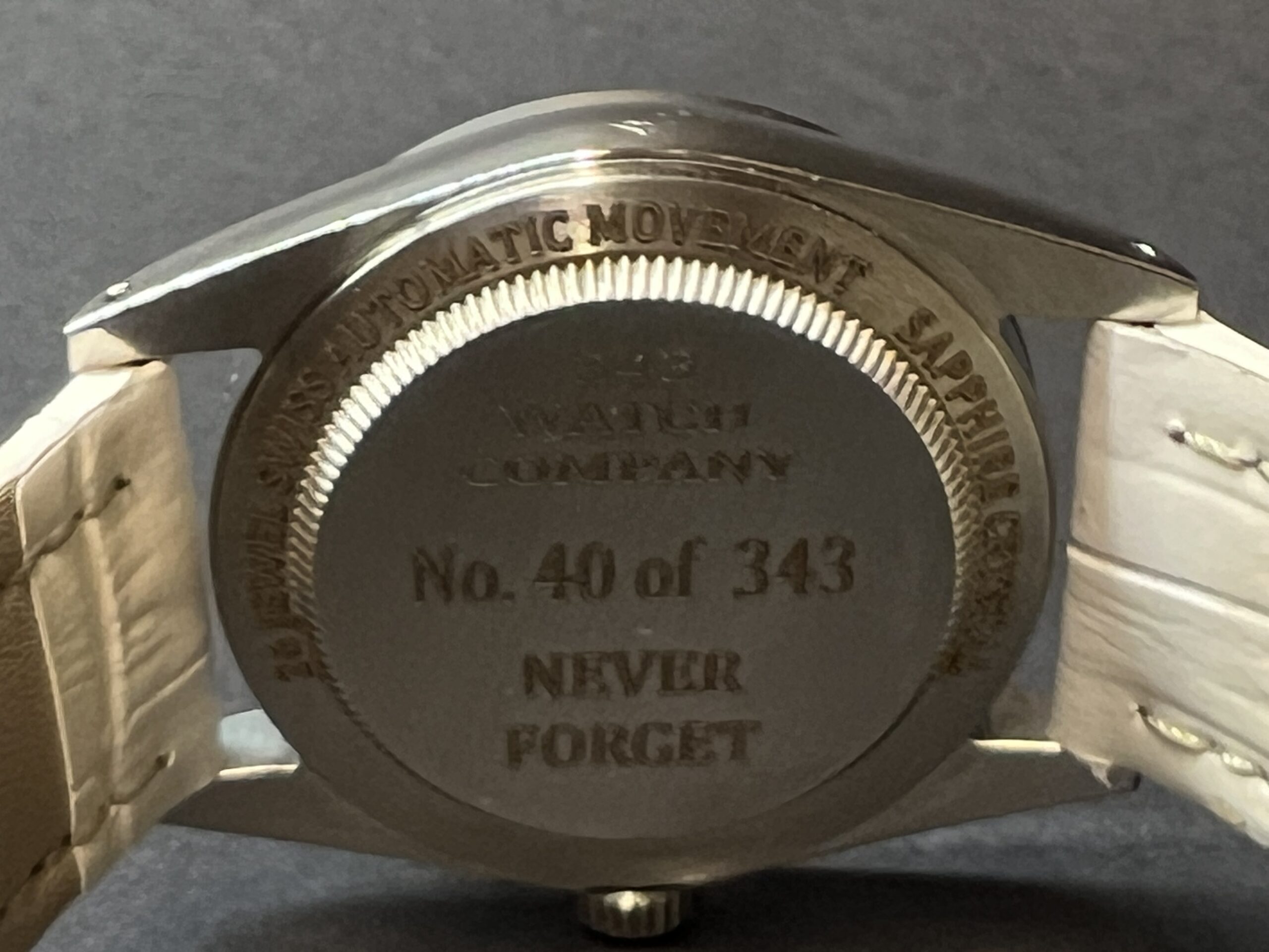 The Women’s Edition is smaller in diameter, 34mm, and has a leather band. The Women’s Edition still has that quality of the 26 Jewel Automatic Swiss movement and Sapphire crystal yet a bit more elegant than the men’s model. The back is still engraved with the number same as the other Editions. The case has holes in the lugs making it easy for changing bands if you prefer a different color or like wear multiple colors.